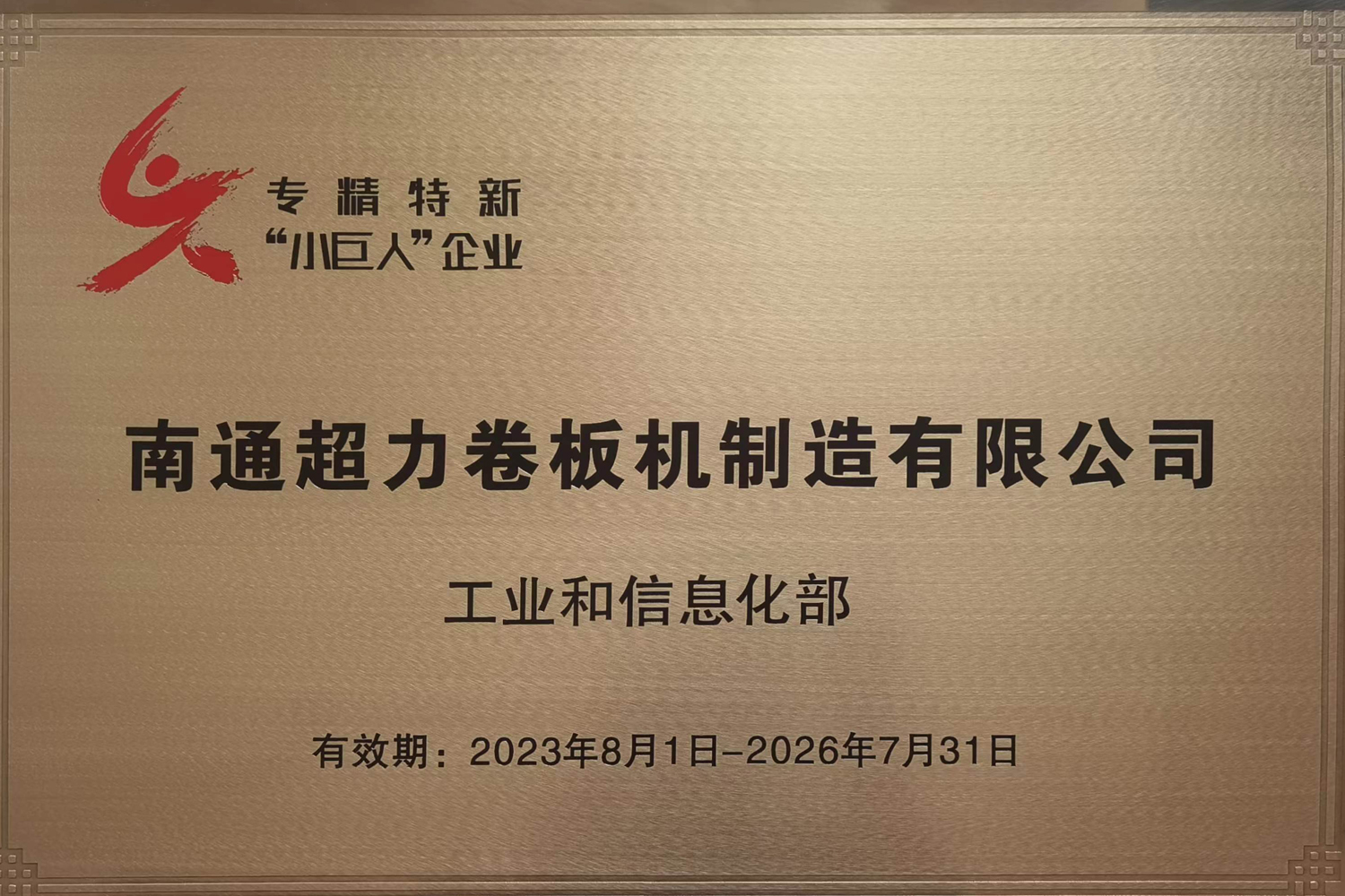 南通超力卷板機(jī)公司憑借15年來對卷板機(jī)領(lǐng)域的專注耕耘,堅(jiān)持自主創(chuàng)新,夯實(shí)核心競爭力,成功入選2023年國家級專精特新“小巨人”企業(yè)名單。